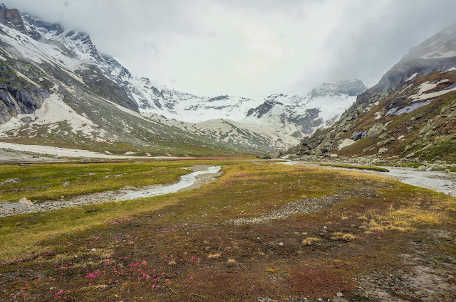 It had gotten very cold and suddenly, I felt a snowflake fall on me. Then, there were more and soon, it became a flurry. To me, this was the literal 'icing' to the 'trekking' cake and now in a first, I had seen snowfall in August as well. I only hoped that there was no rain in the lower areas that would increase the water in the main nallah.